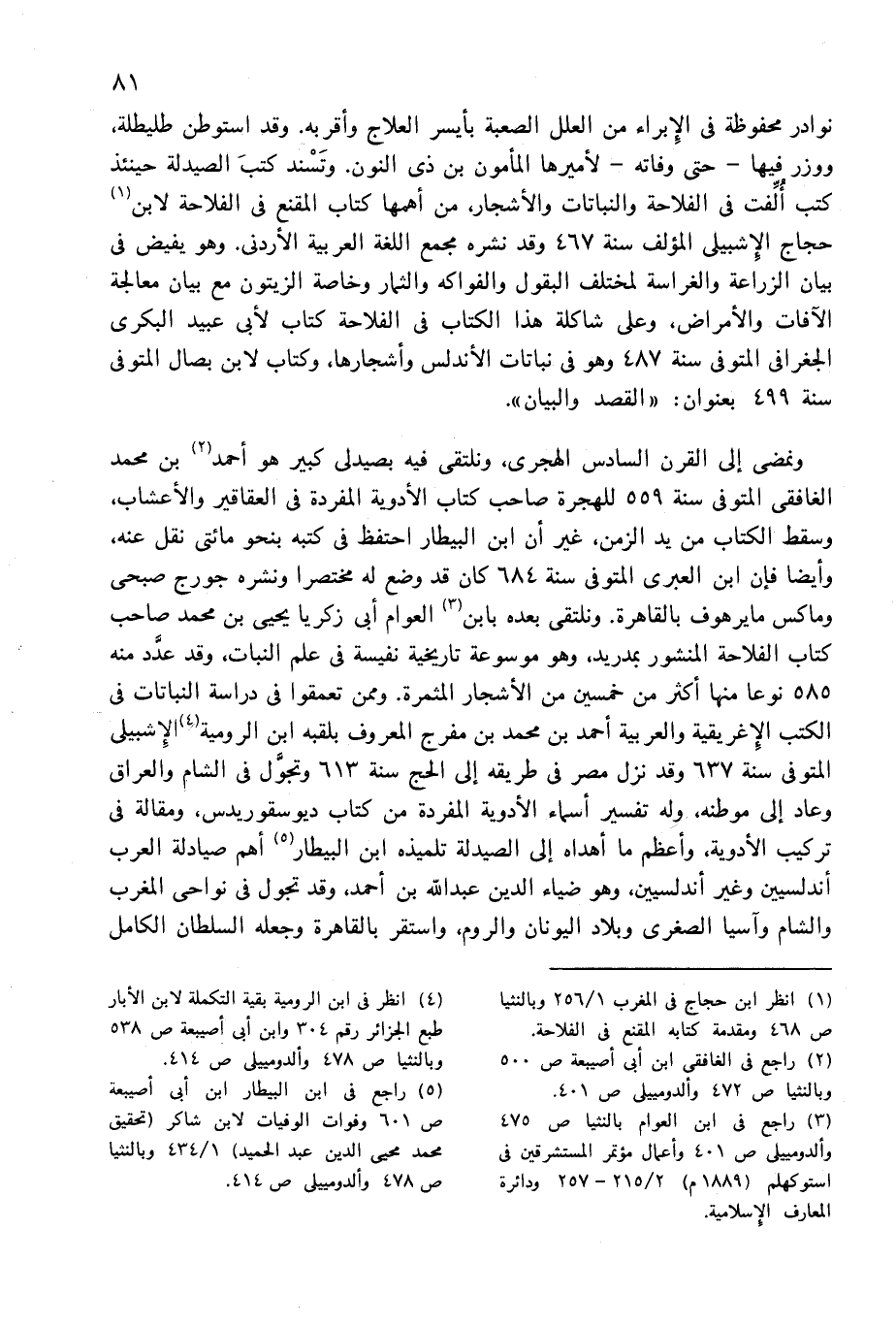 (¬5) راجع فى ابن البيطار ابن أبى أصيبعة ص 601 وفوات الوفيات لابن شاكر (تحقيق محمد محيى الدين عبد الحميد) 1/ 434 وبالنثيا ص 478 وألدومييلى ص 414.