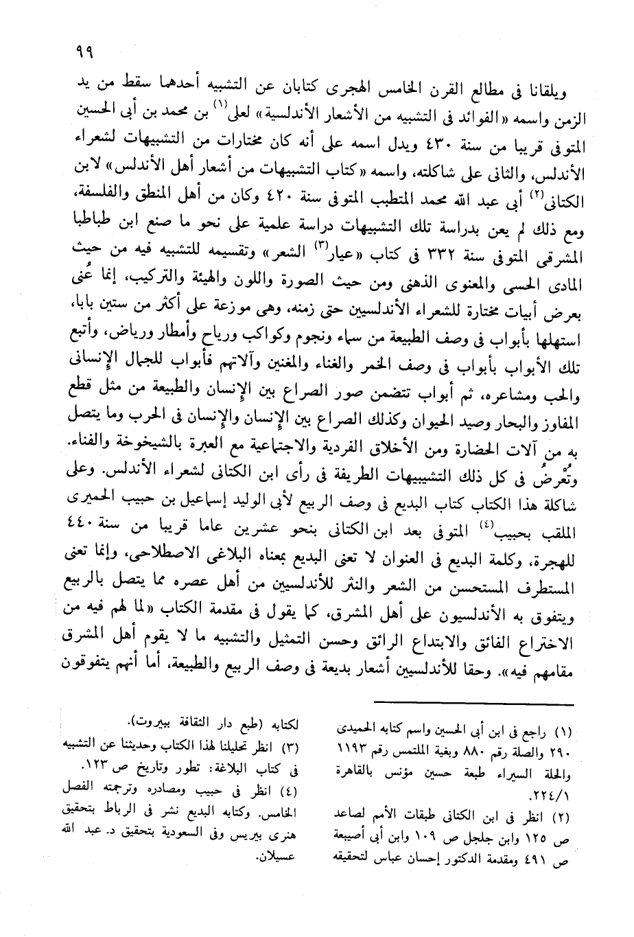 (¬4) انظر فى حبيب ومصادره وترجمته الفصل الخامس. وكتابه البديع نشر فى الرباط بتحقيق هنرى بيريس وفى السعودية بتحقيق د. عبد الله عسيلان.
