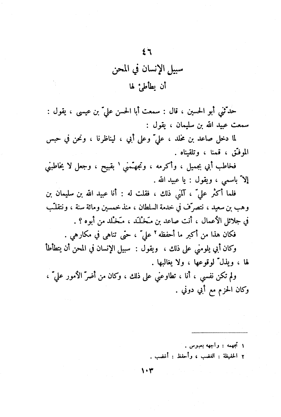 46 سبيل الإنسان في المحن أن يطأطئ لها