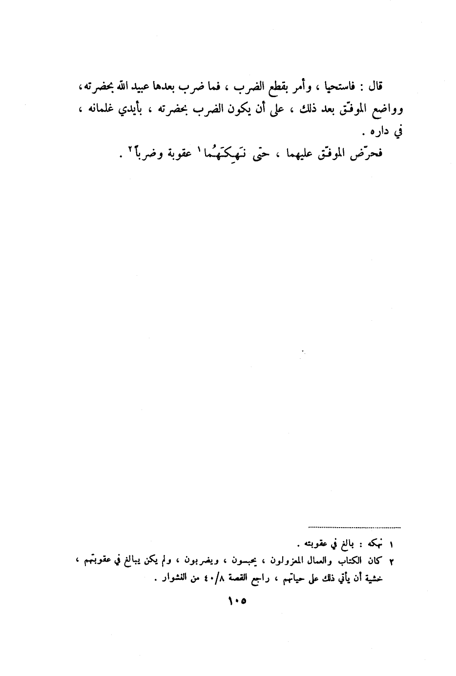 فحرّض الموفّق عليهما، حتى نهكهما «1» عقوبة وضربا «2» .