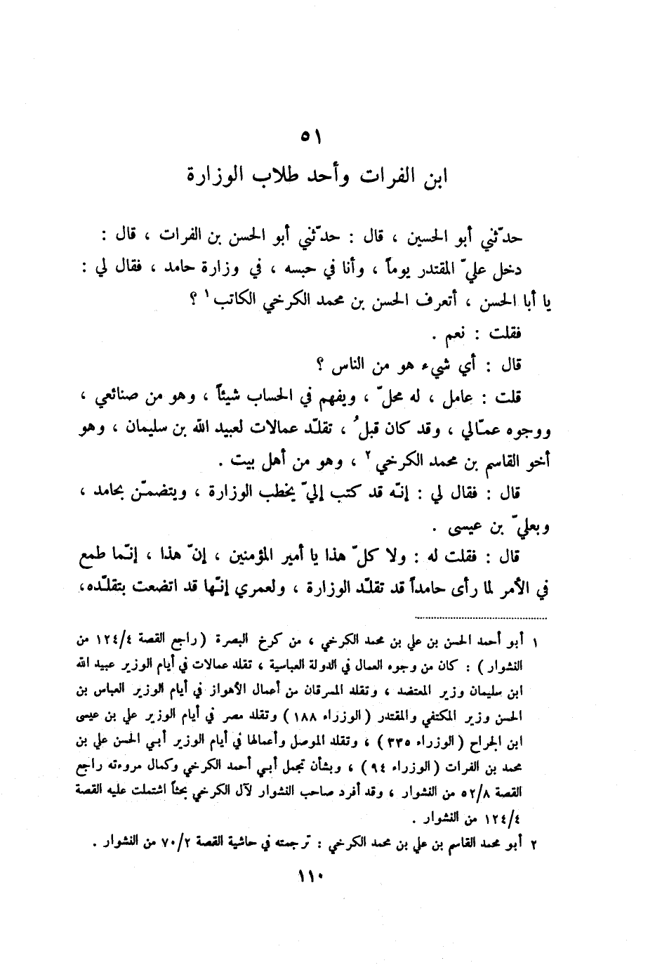 حدّثني أبو الحسين، قال: حدّثني أبو الحسن بن الفرات، قال: