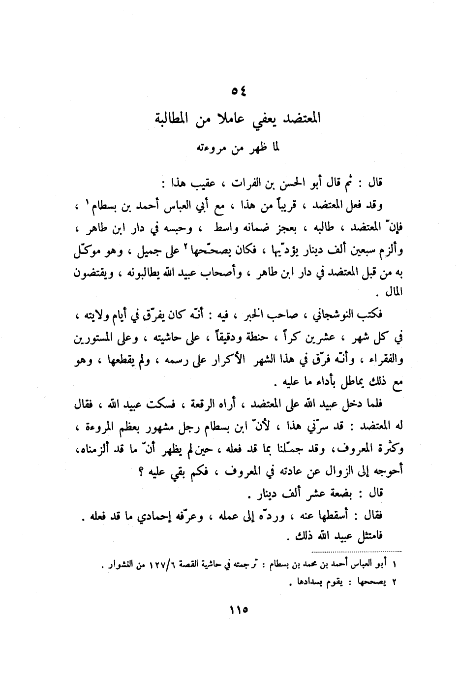 54 المعتضد يعفي عاملا من المطالبة لما ظهر من مروءته