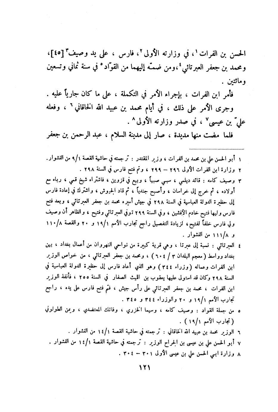 الحسن بن الفرات «1» ، في وزارته الأولى «2» ، فارس، على يد وصيف «3» [45] ، ومحمد بن جعفر العبرتائي «4» ، ومن ضمّه إليهما من القوّاد «5» في سنة ثماني وتسعين ومائتين.