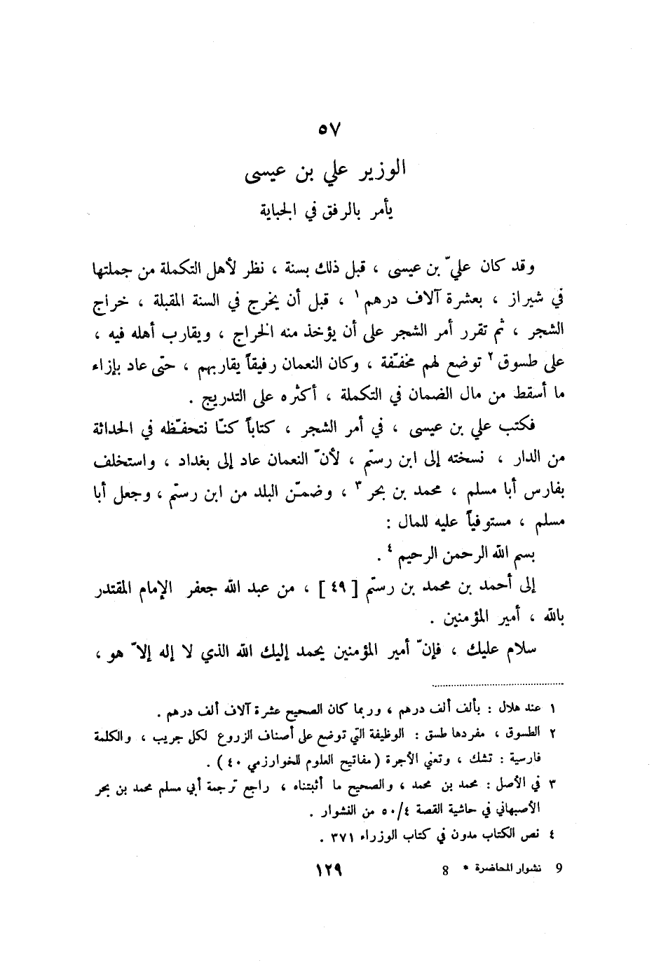 57 الوزير علي بن عيسى يأمر بالرفق في الجباية