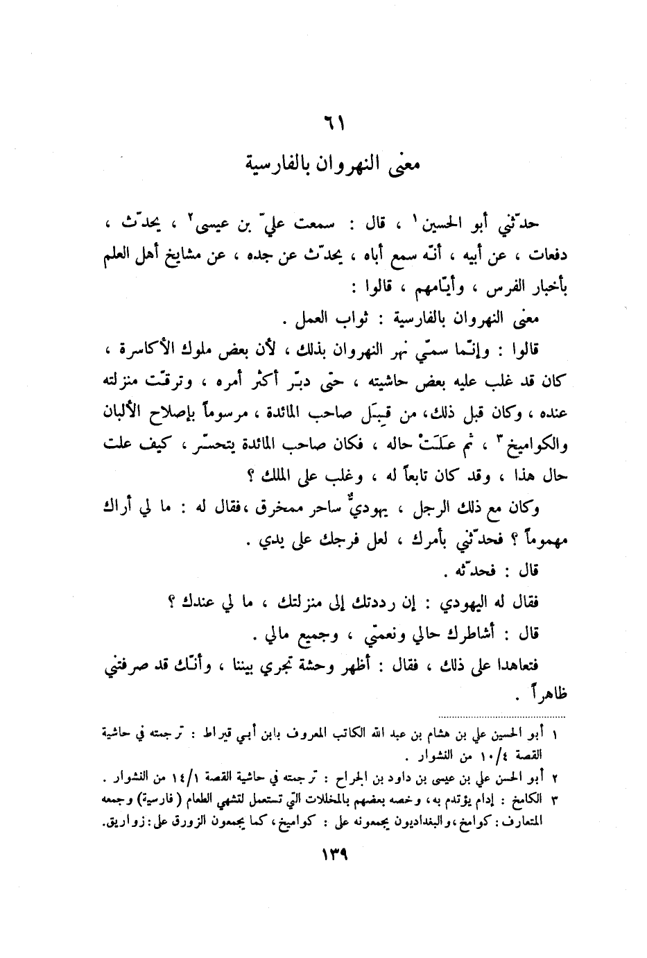 ، قال: سمعت عليّ بن عيسى «2» ، يحدّث، دفعات، عن أبيه، أنّه سمع أباه، يحدّث عن جده، عن مشايخ أهل العلم بأخبار الفرس، وأيّامهم، قالوا:
