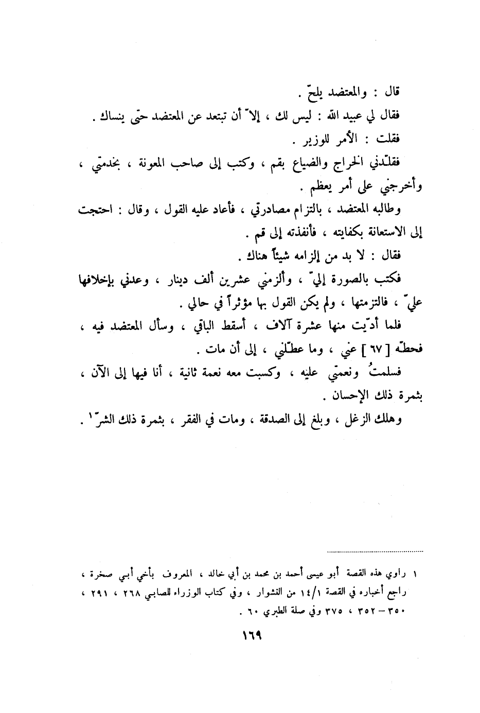 فلما أدّيت منها عشرة آلاف، أسقط الباقي، وسأل المعتضد فيه، فحطّه [67] عني، وما عطّلني، إلى أن مات.