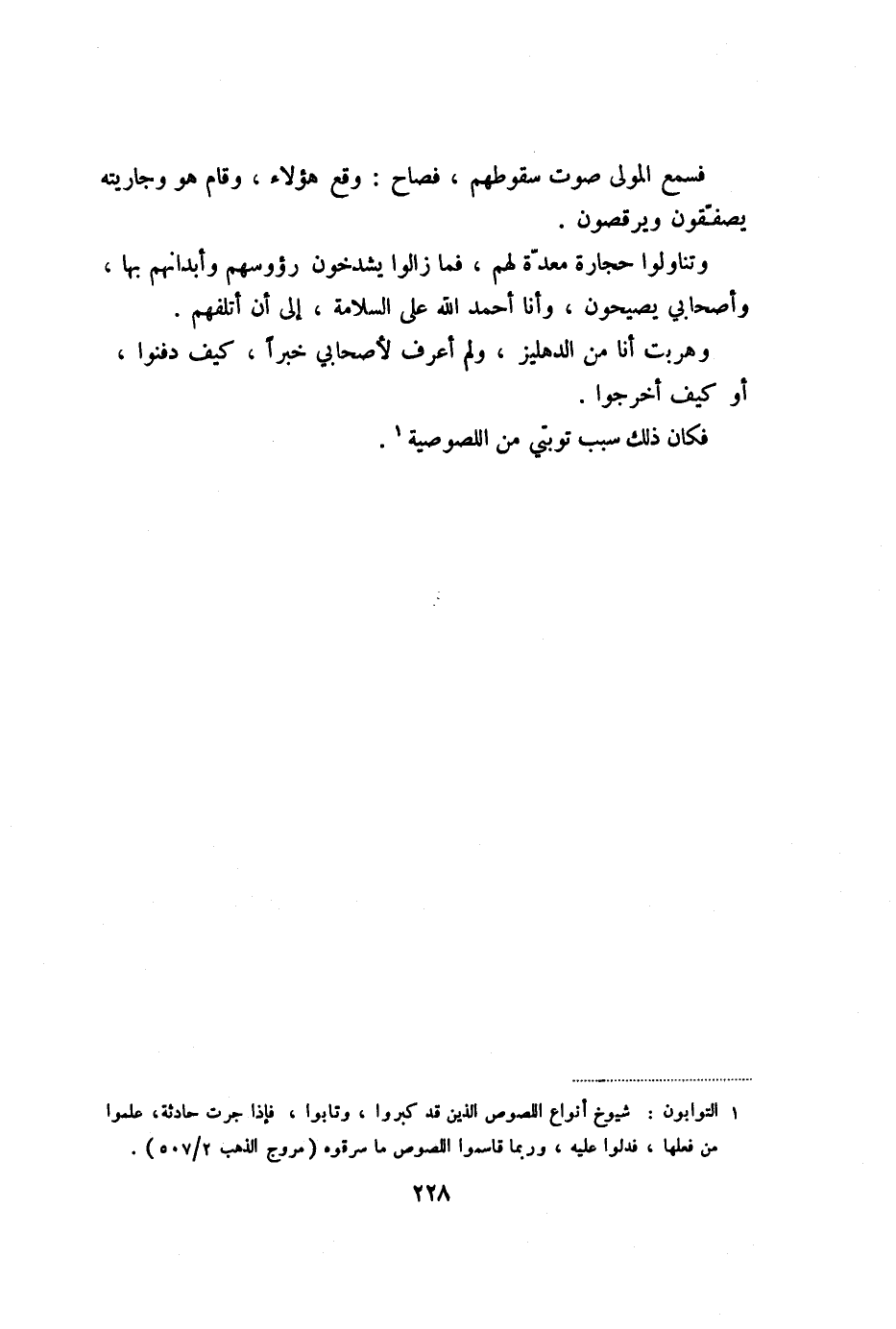 وتناولوا حجارة معدّة لهم، فما زالوا يشدخون رؤوسهم وأبدانهم بها، وأصحابي يصيحون، وأنا أحمد الله على السلامة، إلى أن أتلفهم.