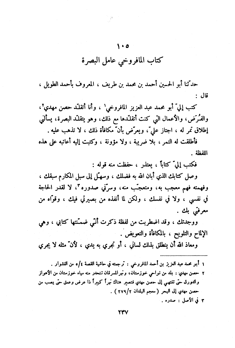 105 كتاب المافروخي عامل البصرة