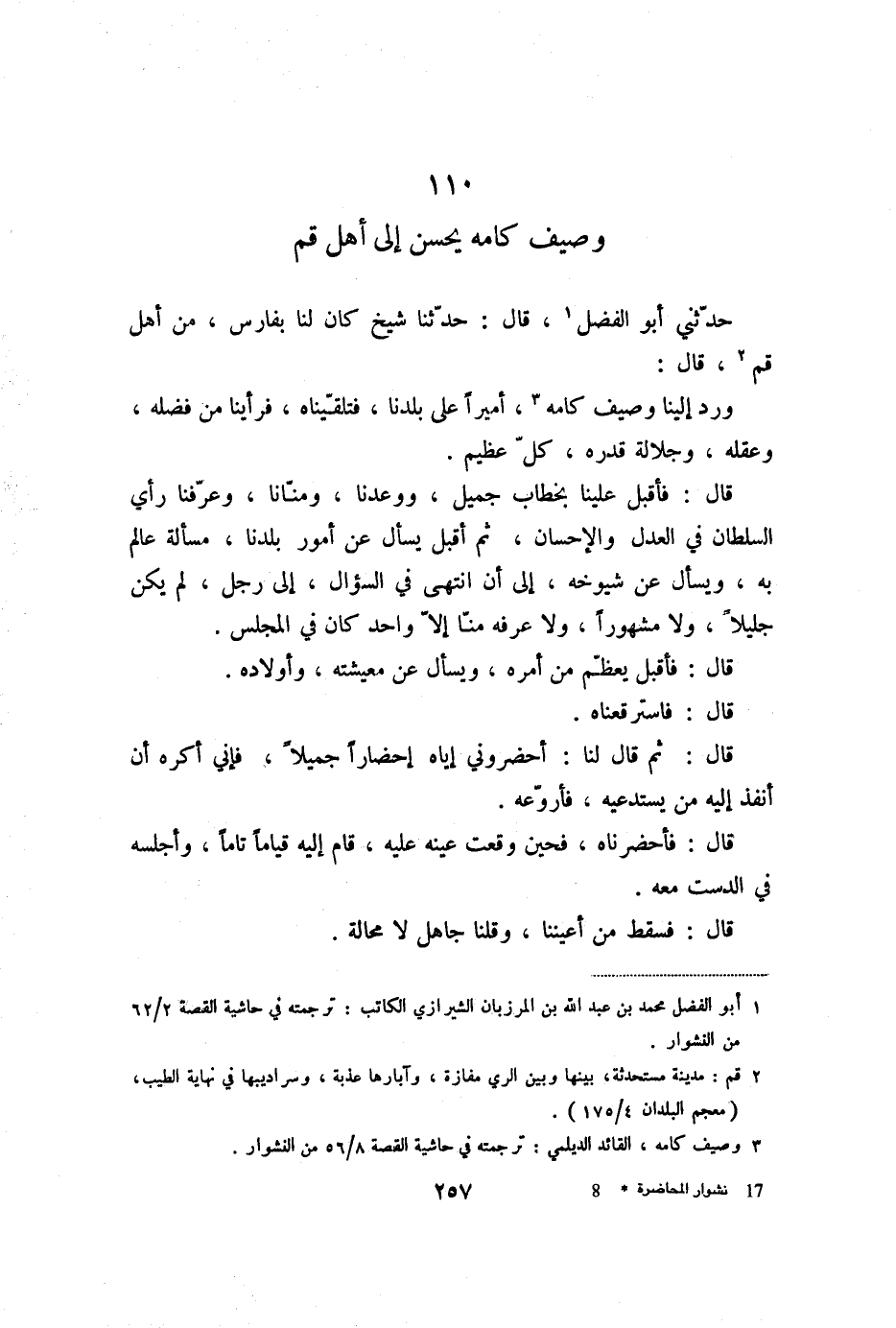حدّثني أبو الفضل «1» ، قال: حدّثنا شيخ كان لنا بفارس، من أهل قم «2» ، قال: