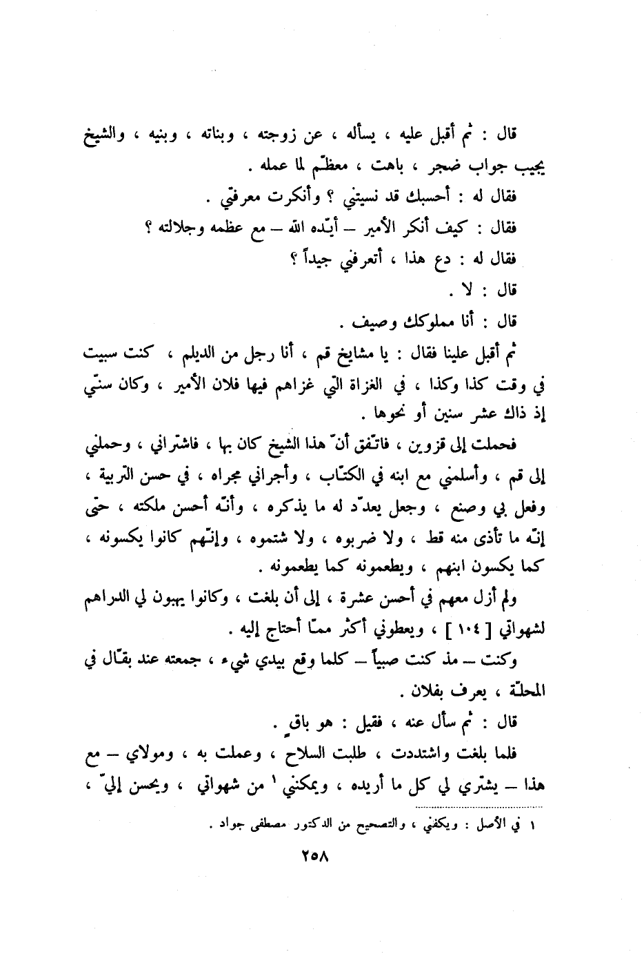 ولم أزل معهم في أحسن عشرة، إلى أن بلغت، وكانوا يهبون لي الدراهم لشهواتي [104] ، ويعطوني أكثر ممّا أحتاج إليه.