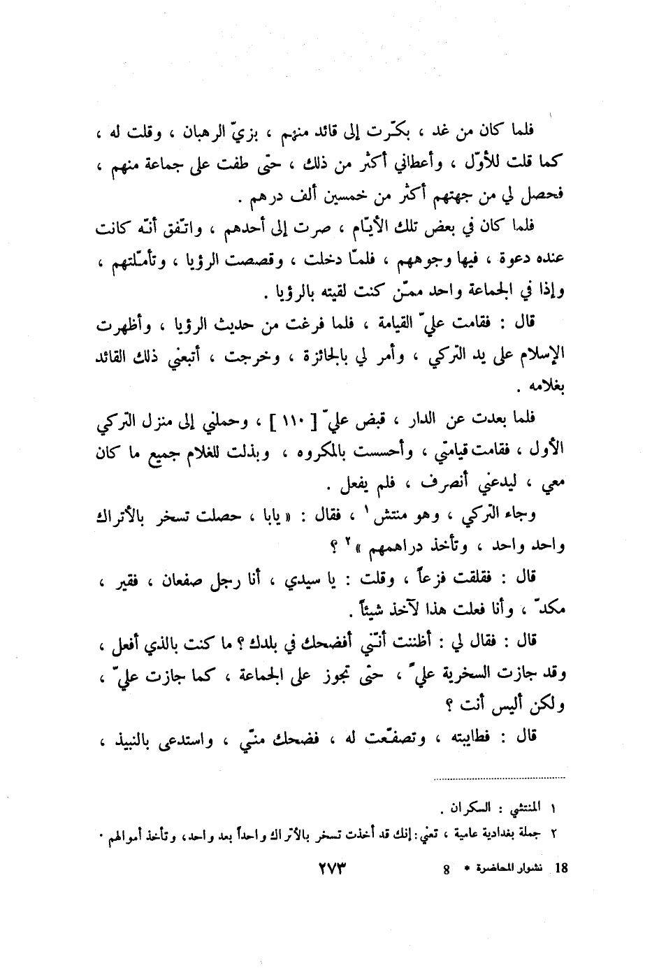 وجاء التركي، وهو منتش «1» ، فقال: «يابا، حصلت تسخر بالأتراك واحد واحد، وتأخذ دراهمهم» «2» ؟