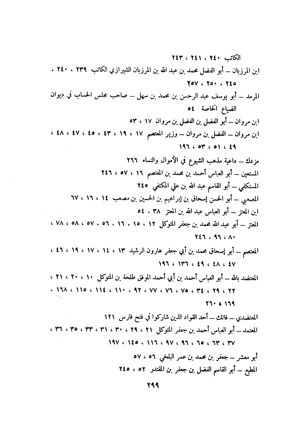 ابن المرزبان- أبو الفضل محمد بن عبد الله بن المرزبان الشيرازي الكاتب 239، 240، 245، 250، 257