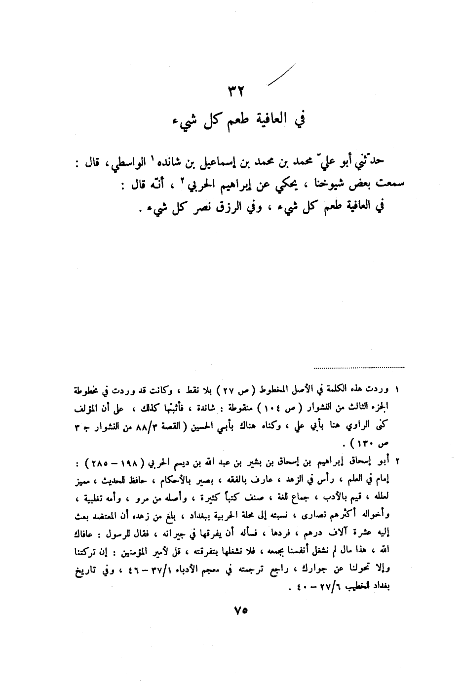 سمعت بعض شيوخنا، يحكي عن إبراهيم الحربي «2» ، أنّه قال:
