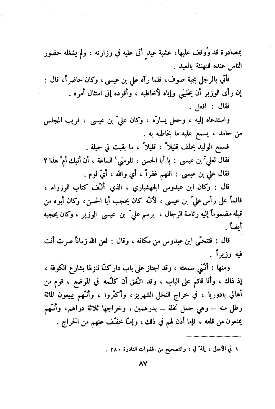 فقال علي بن عيسى: اللهم غفرا، أي والله، أيّ لوم.