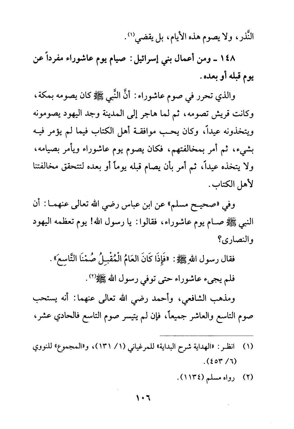 148 - ومن أعمال بني إسرائيل: صيام يوم عاشوراء مفردًا عن يوم قبله أو بعده.
