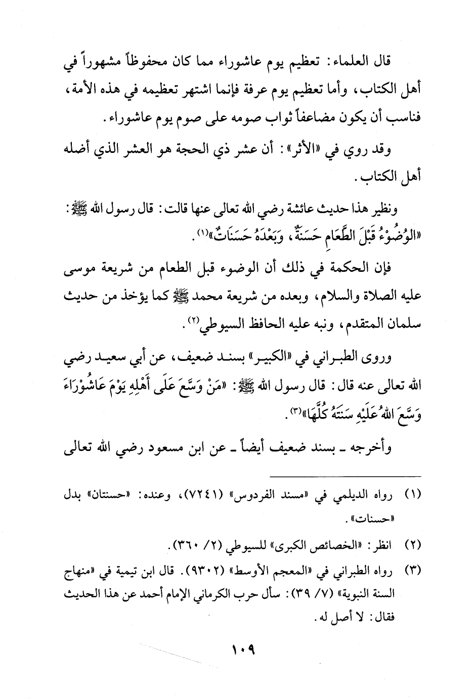 وروى الطبراني في "الكبير" بسند ضعيف، عن أبي سعيد رضي الله تعالى عنه قال: قال رسول الله -صلى الله عليه وسلم-: "مَنْ وَسَّعَ عَلَى أَهْلِهِ يَوْمَ عاشُوْراءَ وَسَّعَ اللهُ عَلَيْهِ سَنَتَهُ كُلَّهَا" (¬3).
