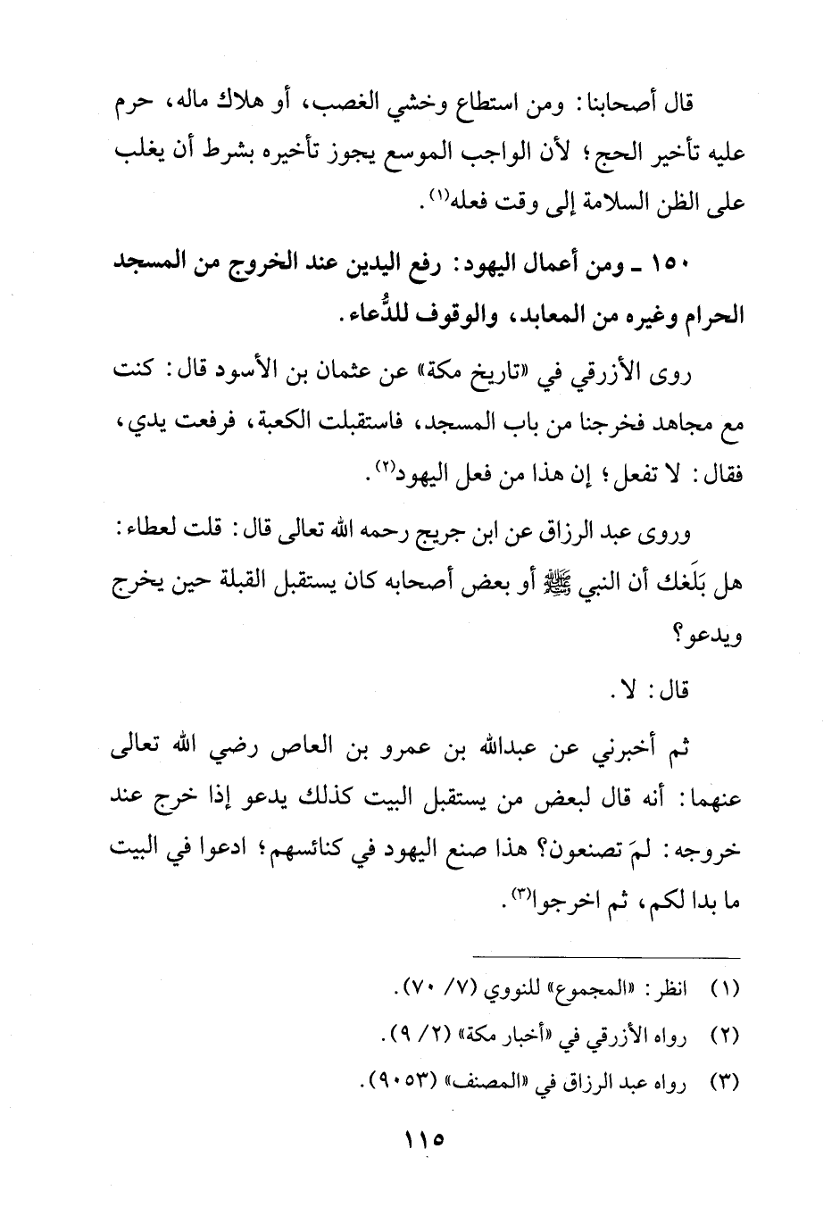 150 - ومن أعمال اليهود: رفع اليدين عند الخروج من المسجد الحرام وغيره من المعابد، والوقوف للدُّعاء.