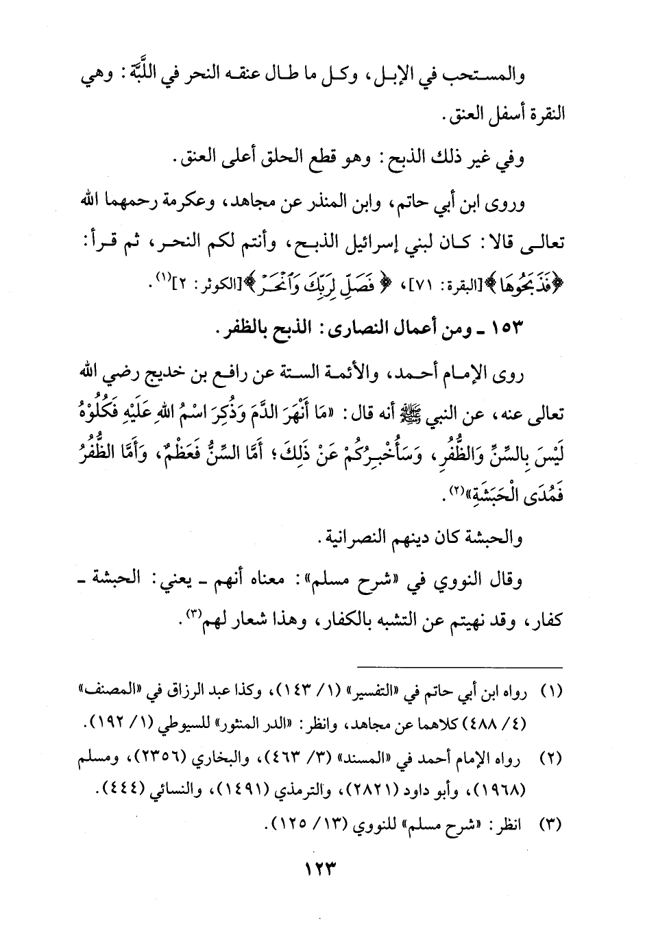 153 - ومن أعمال النصارى: الذبح بالظفر.