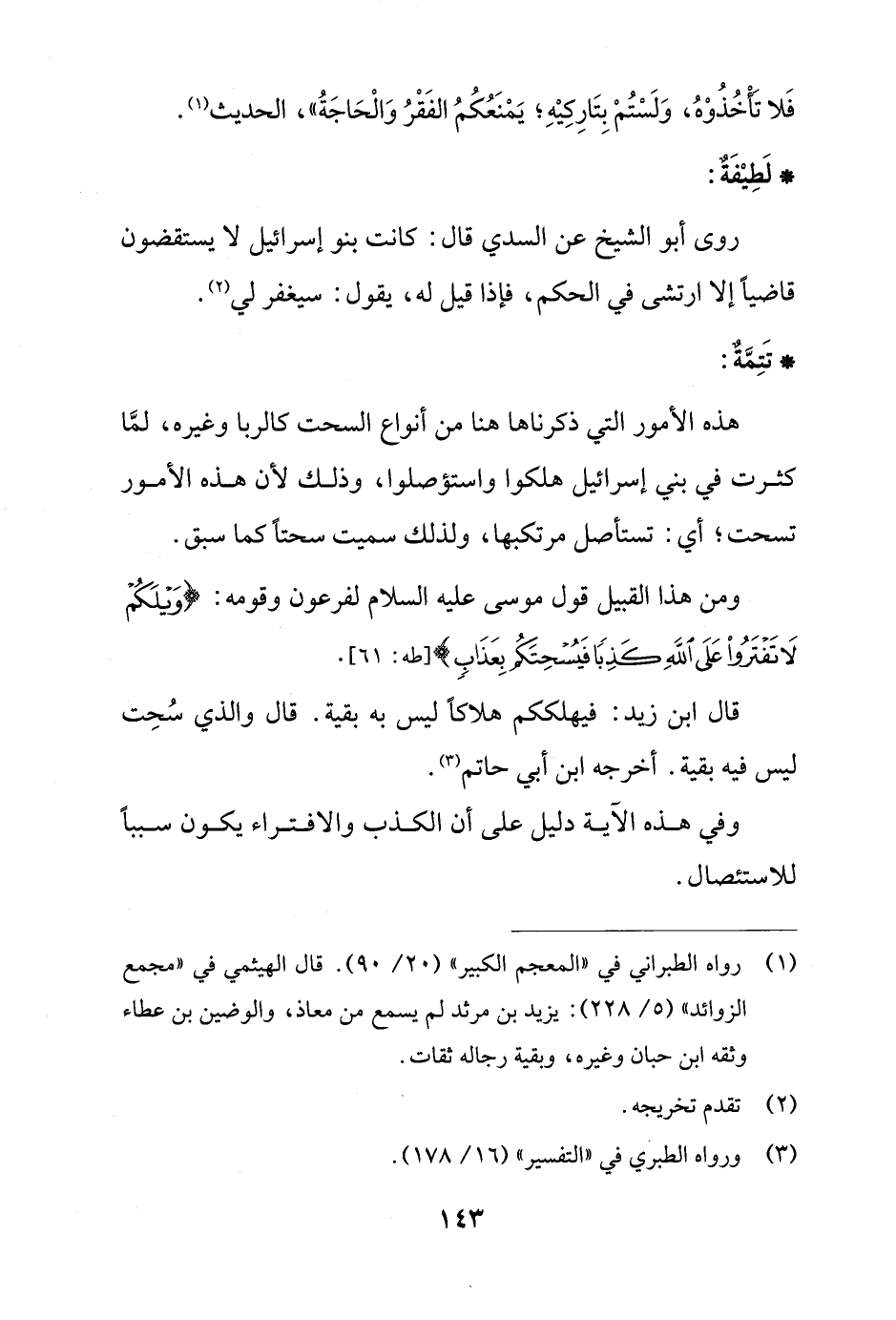 قال ابن زيد: فيهلككم هلاكًا ليس به بقية. قال والذي سُحِت ليس فيه بقية. أخرجه ابن أبي حاتم (¬3).