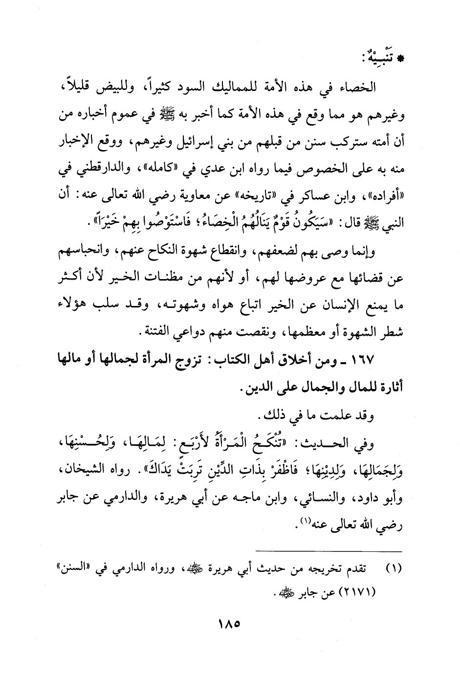 167 - ومن أخلاق أهل الكتاب: تزوج المرأة لجمالها أو مالها أثارة للمال والجمال على الدين.