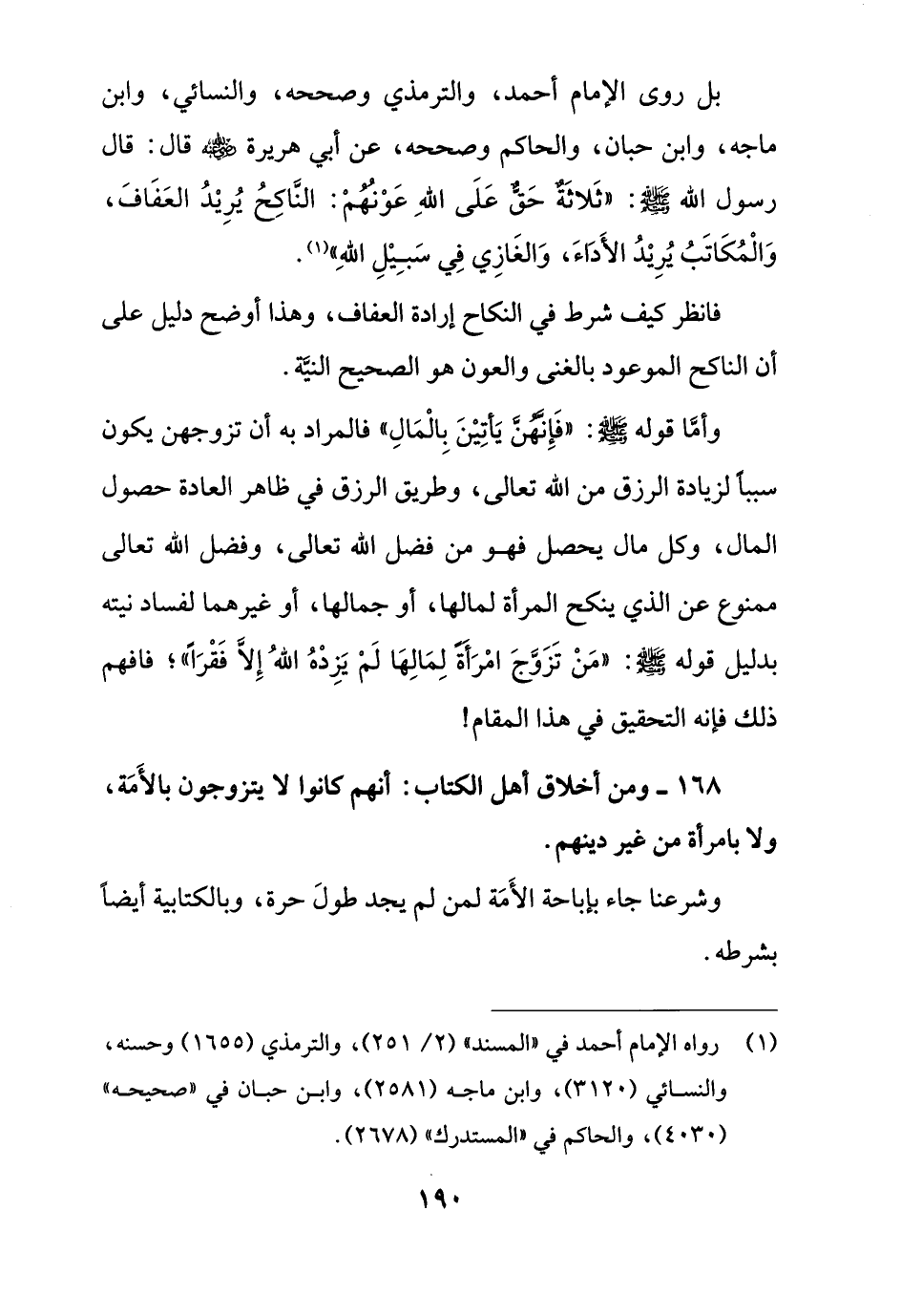 168 - ومن أخلاق أهل الكتاب: أنهم كانوا لا يتزوجون بالأَمَة، ولا بامرأة من غير دينهم.