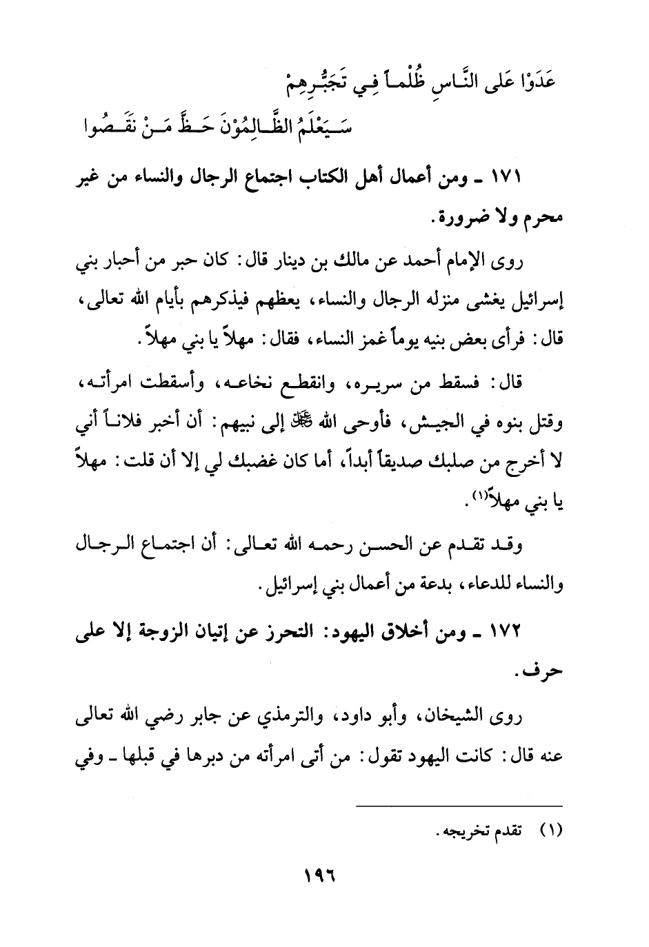 172 - ومن أخلاق اليهود: التحرز عن إتيان الزوجة إلا على حرف.