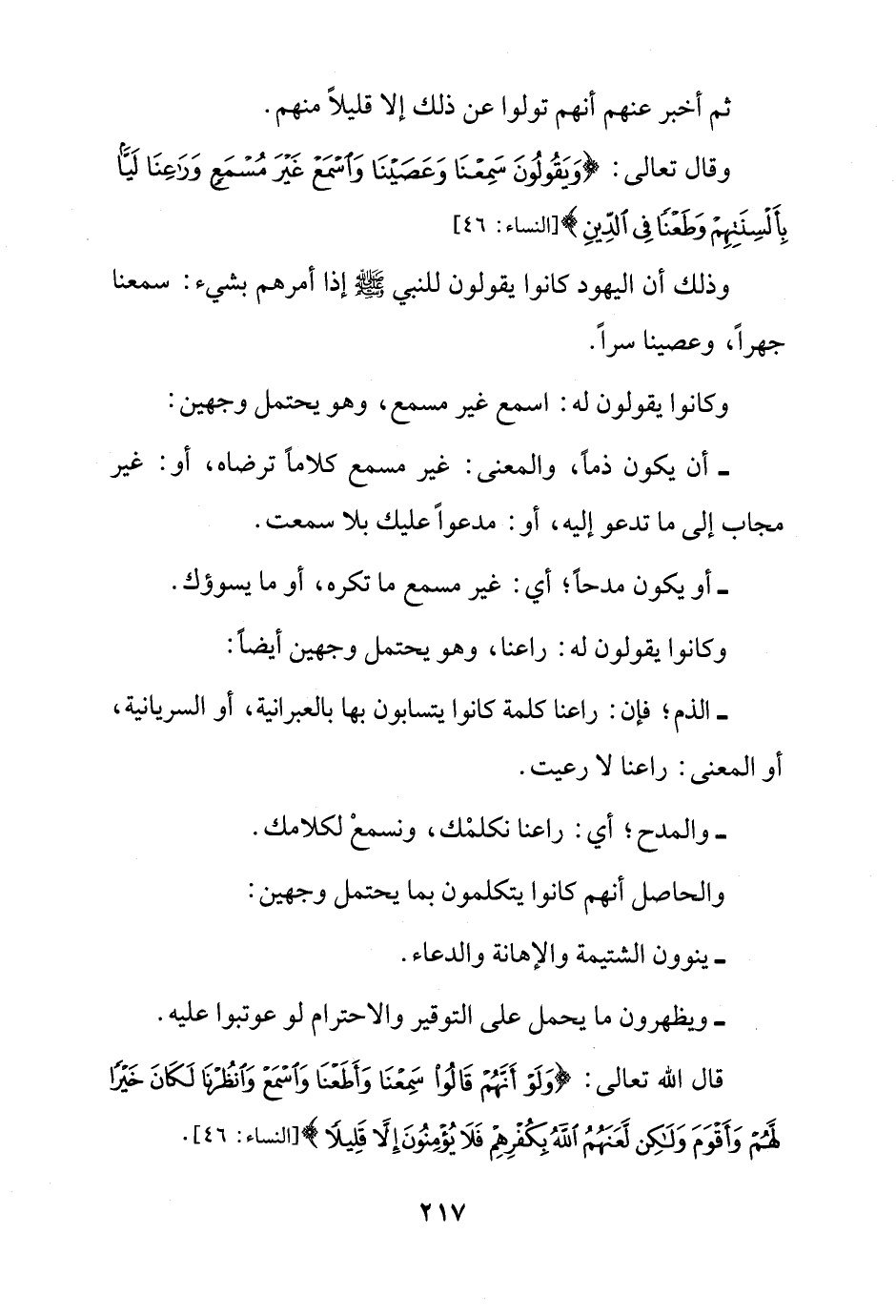 قال الله تعالى: {وَلَوْ أَنَّهُمْ قَالُوا سَمِعْنَا وَأَطَعْنَا وَاسْمَعْ وَانْظُرْنَا لَكَانَ خَيْرًا لَهُمْ وَأَقْوَمَ وَلَكِنْ لَعَنَهُمُ اللَّهُ بِكُفْرِهِمْ فَلَا يُؤْمِنُونَ إِلَّا قَلِيلًا} [النساء: 46].