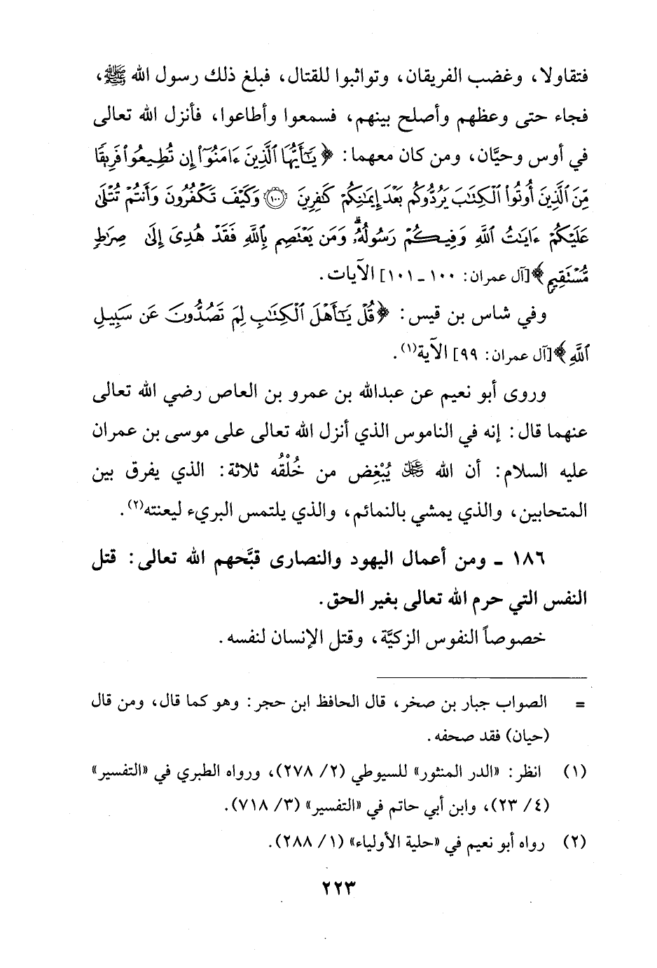 186 - ومن أعمال اليهود والنصارى قبَّحهم الله تعالى: قتل النفس التي حرم الله تعالى بغير الحق.