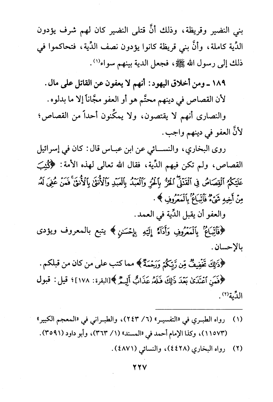 189 - ومن أخلاق اليهود: أنهم لا يعفون عن القاتل على مال.