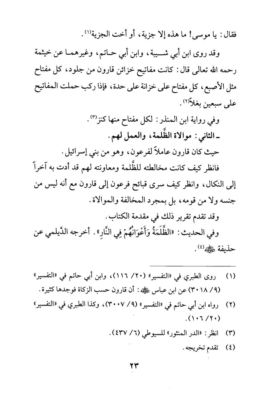 (¬1) روى الطبري في "التفسير" (20/ 116)، وابن أبي حاتم في "التفسير" (9/ 3018) عن ابن عباس - رضي الله عنه -: أن قارون حسب الزكاة فوجدها كثيرة.