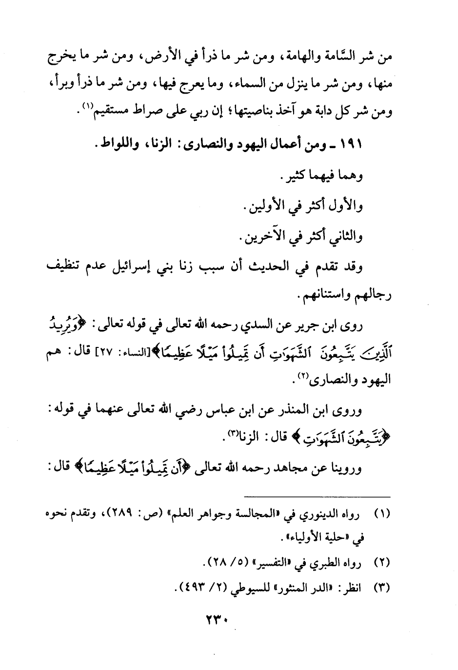 191 - ومن أعمال اليهود والنصارى: الزنا، واللواط.