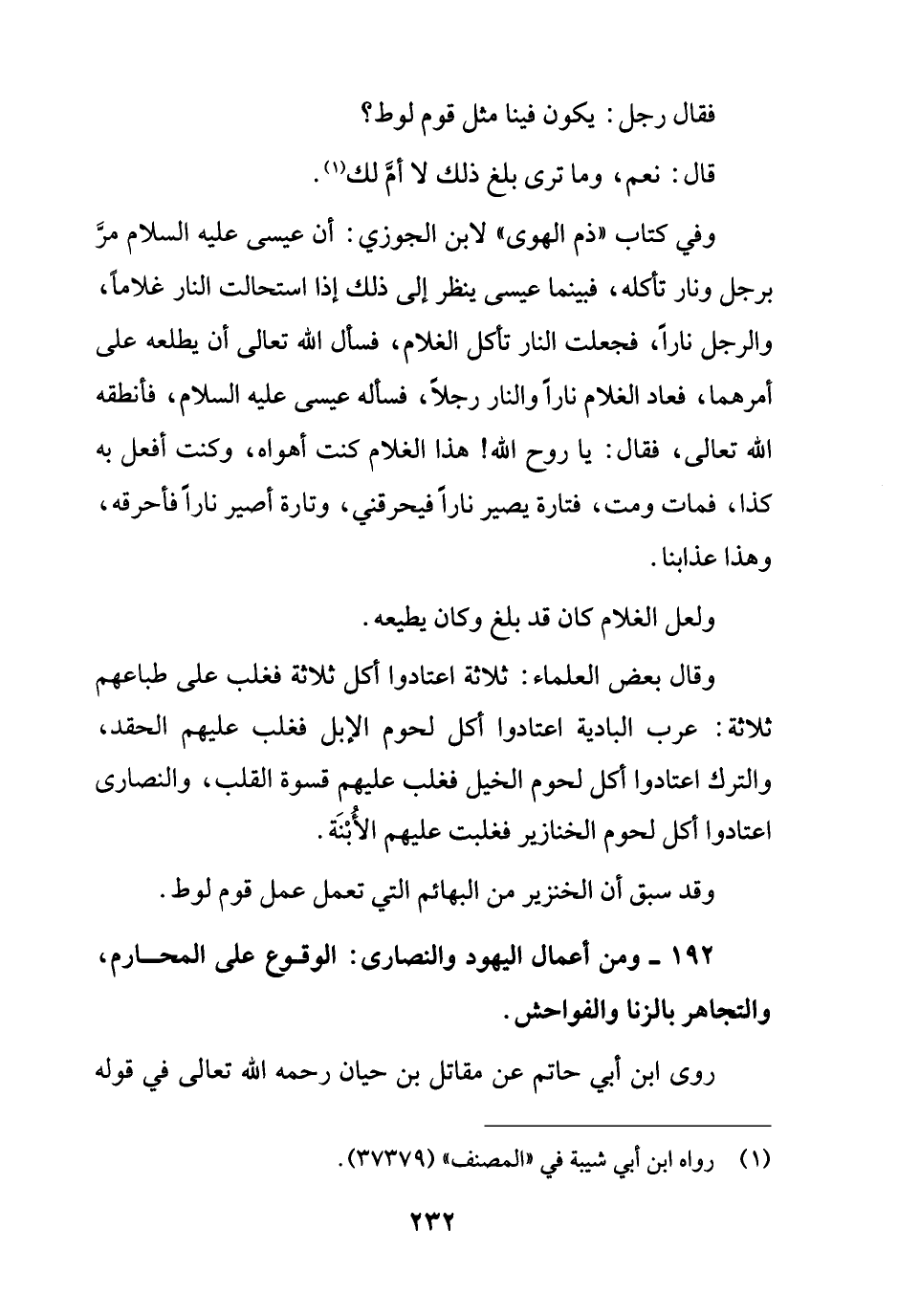 192 - ومن أعمال اليهود والنصارى: الوقوع على المحارم، والتجاهر بالزنا والفواحش.