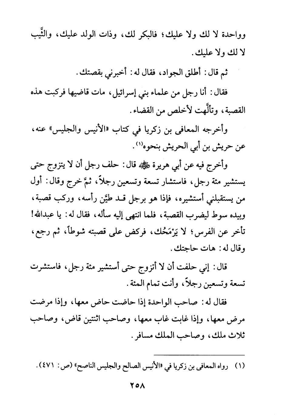 (¬1) رواه المعافى بن زكريا في "الأنيس الصالح والجليس الناصح" (ص: 471).