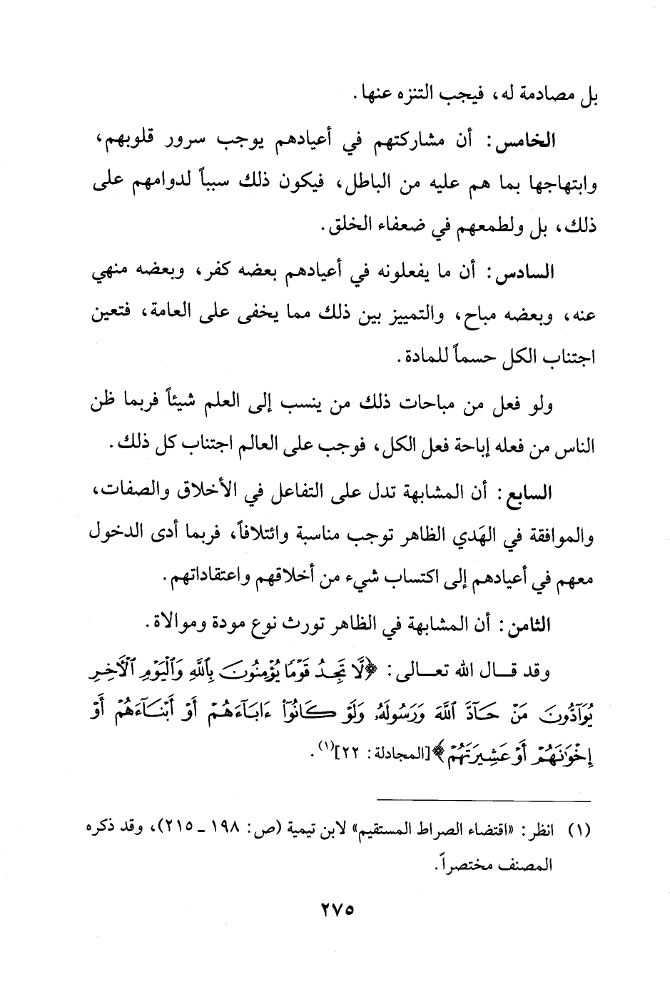 (¬1) انظر: "اقتضاء الصراط المستقيم" لابن تيمية (ص: 198 - 215)، وقد ذكره المصنف مختصرًا.
