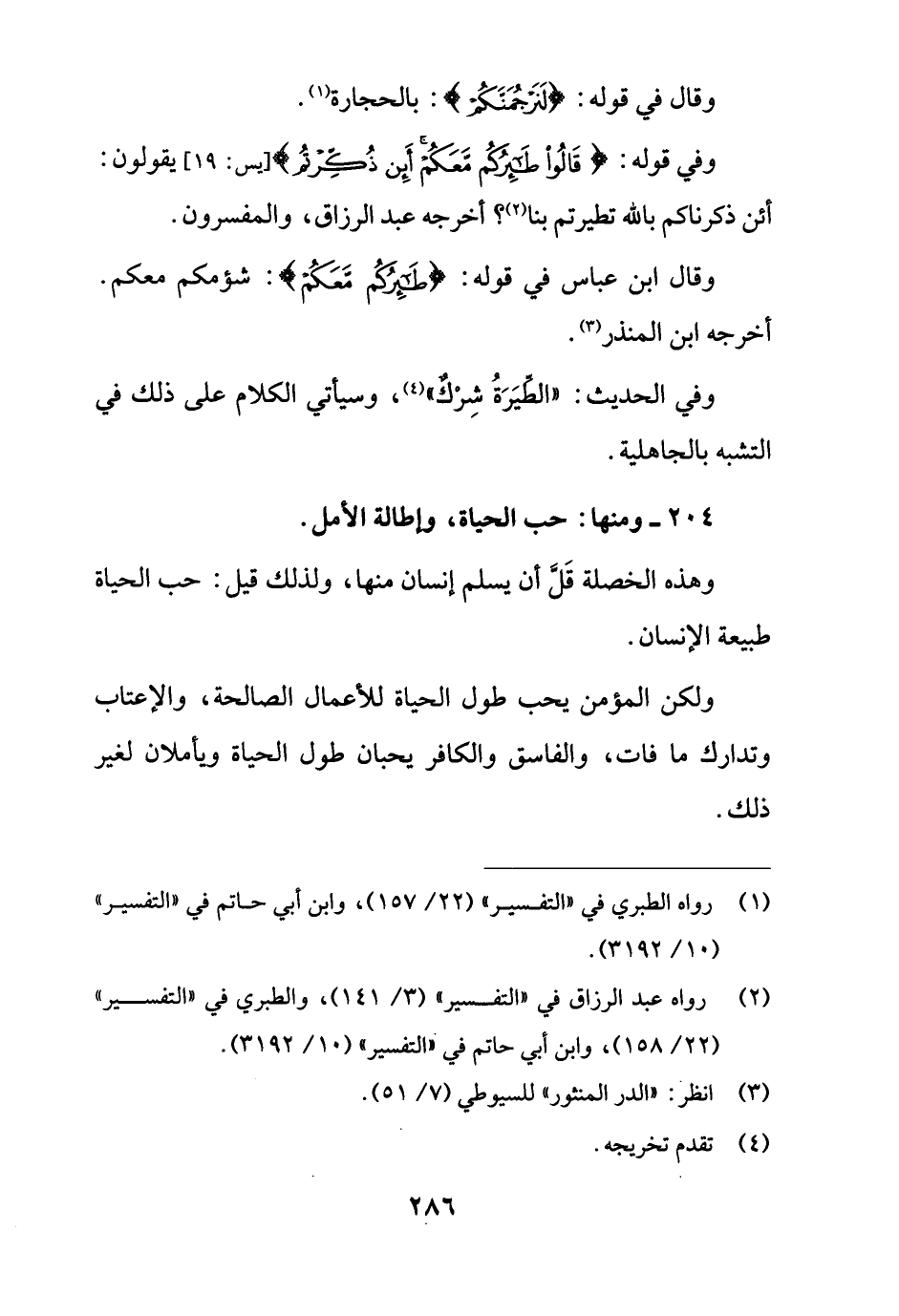 204 - ومنها: حب الحياة، وإطالة الأمل.