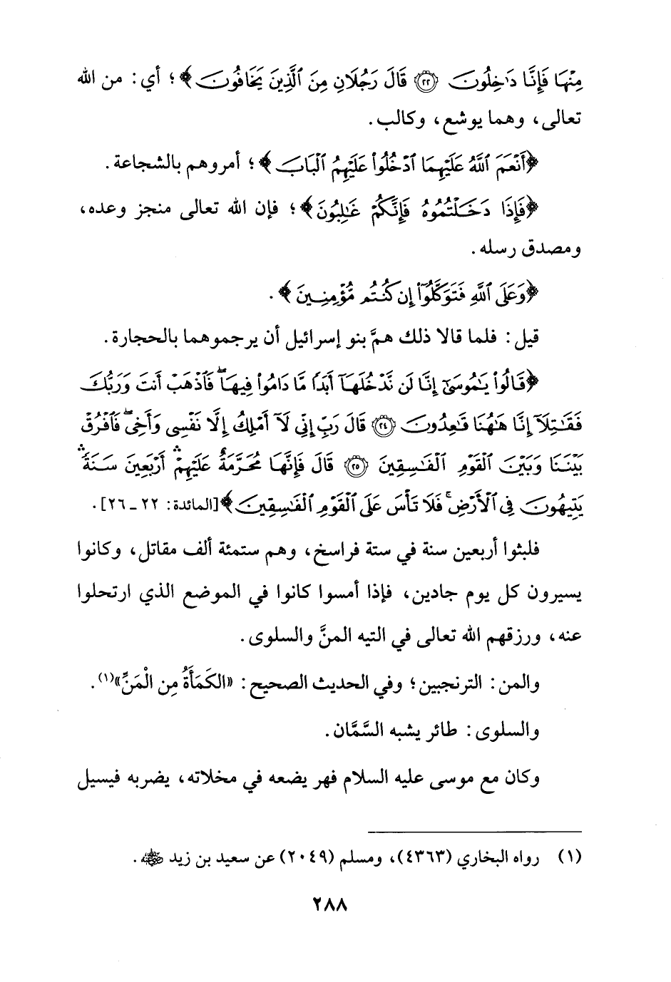 {قَالُوا يَامُوسَى إِنَّا لَنْ نَدْخُلَهَا أَبَدًا مَا دَامُوا فِيهَا فَاذْهَبْ أَنْتَ وَرَبُّكَ فَقَاتِلَا إِنَّا هَاهُنَا قَاعِدُونَ (24) قَالَ رَبِّ إِنِّي لَا أَمْلِكُ إِلَّا نَفْسِي وَأَخِي فَافْرُقْ بَيْنَنَا وَبَيْنَ الْقَوْمِ الْفَاسِقِينَ (25) قَالَ فَإِنَّهَا مُحَرَّمَةٌ عَلَيْهِمْ أَرْبَعِينَ سَنَةً يَتِيهُونَ فِي الْأَرْضِ فَلَا تَأْسَ عَلَى الْقَوْمِ الْفَاسِقِينَ} [المائدة: 22 - 26].