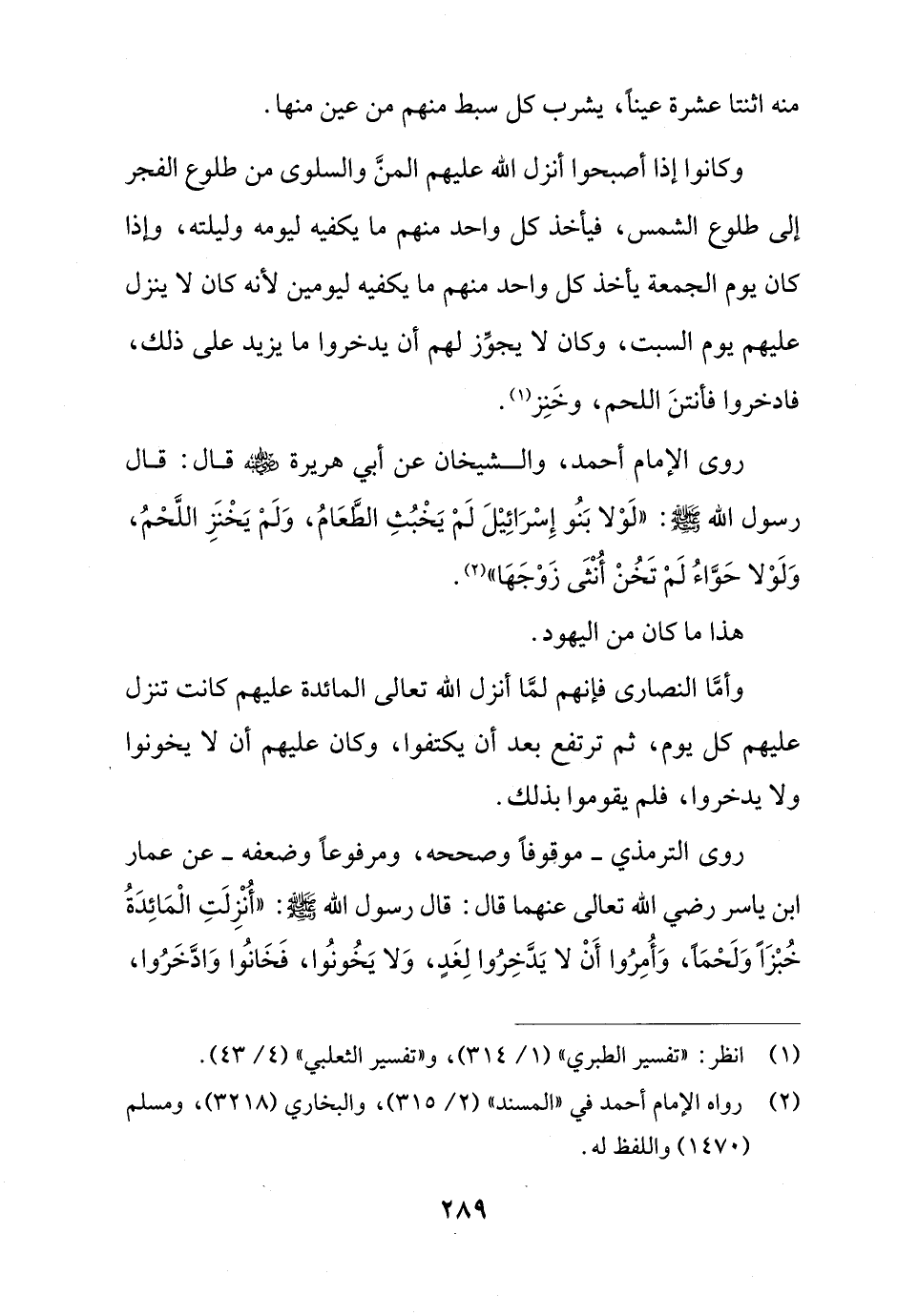 روى الترمذي -موقوفًا وصححه، ومرفوعًا وضعفه- عن عمار ابن ياسر رضي الله تعالى عنهما قال: قال رسول الله -صلى الله عليه وسلم-: "أُنْزِلَتِ الْمائِدَةُ خُبْزًا وَلَحْمًا، وَأُمِرُوا أَنْ لا يَدَّخِرُوا لِغَدٍ، وَلا يَخُونُوا، فَخانُوا وادَّخَرُوا،