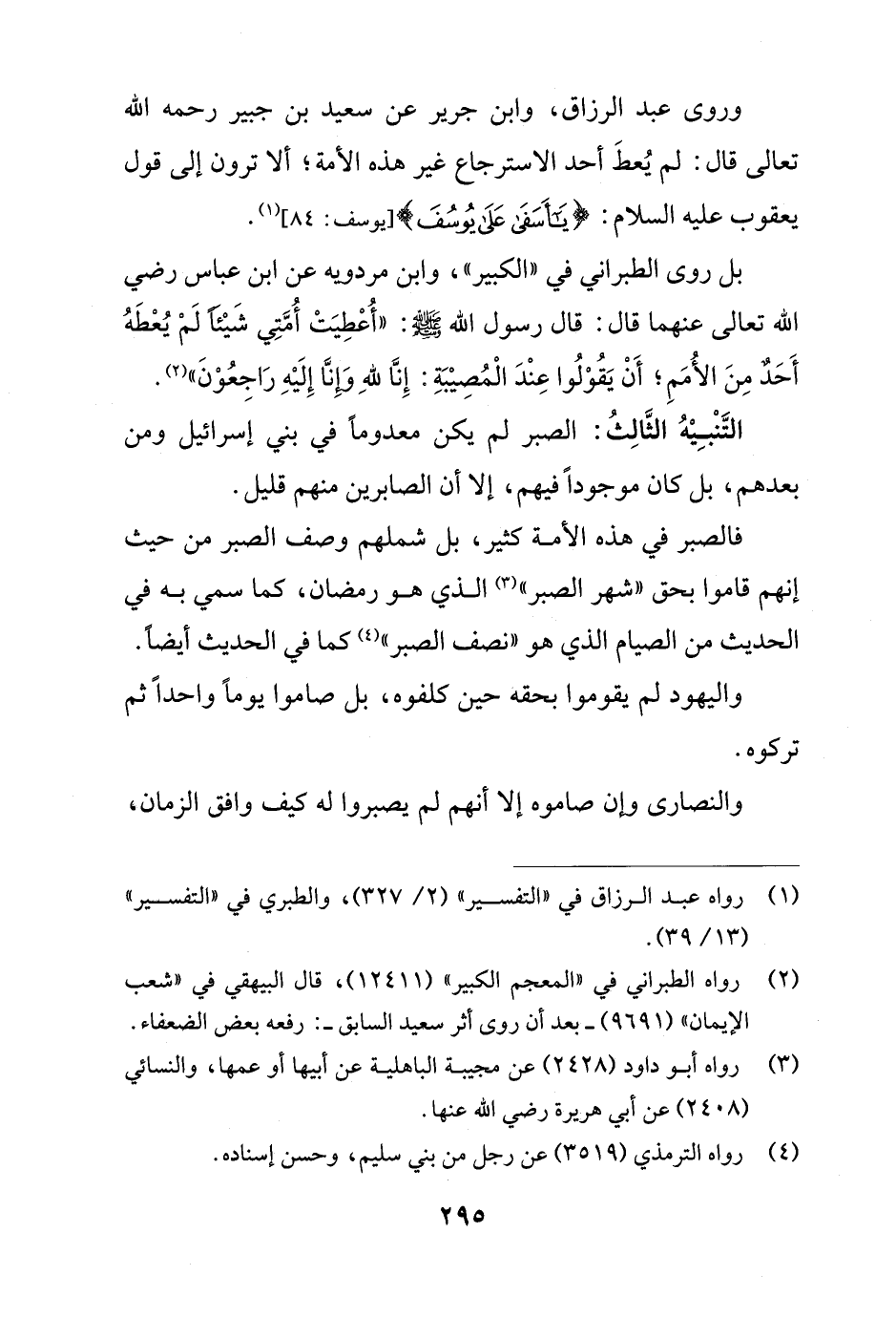 فالصبر في هذه الأمة كثير، بل شملهم وصف الصبر من حيث إنهم قاموا بحق "شهر الصبر" (¬3) الذي هو رمضان، كما سمي به في الحديث من الصيام الذي هو "نصف الصبر" (¬4) كما في الحديث أيضاً.