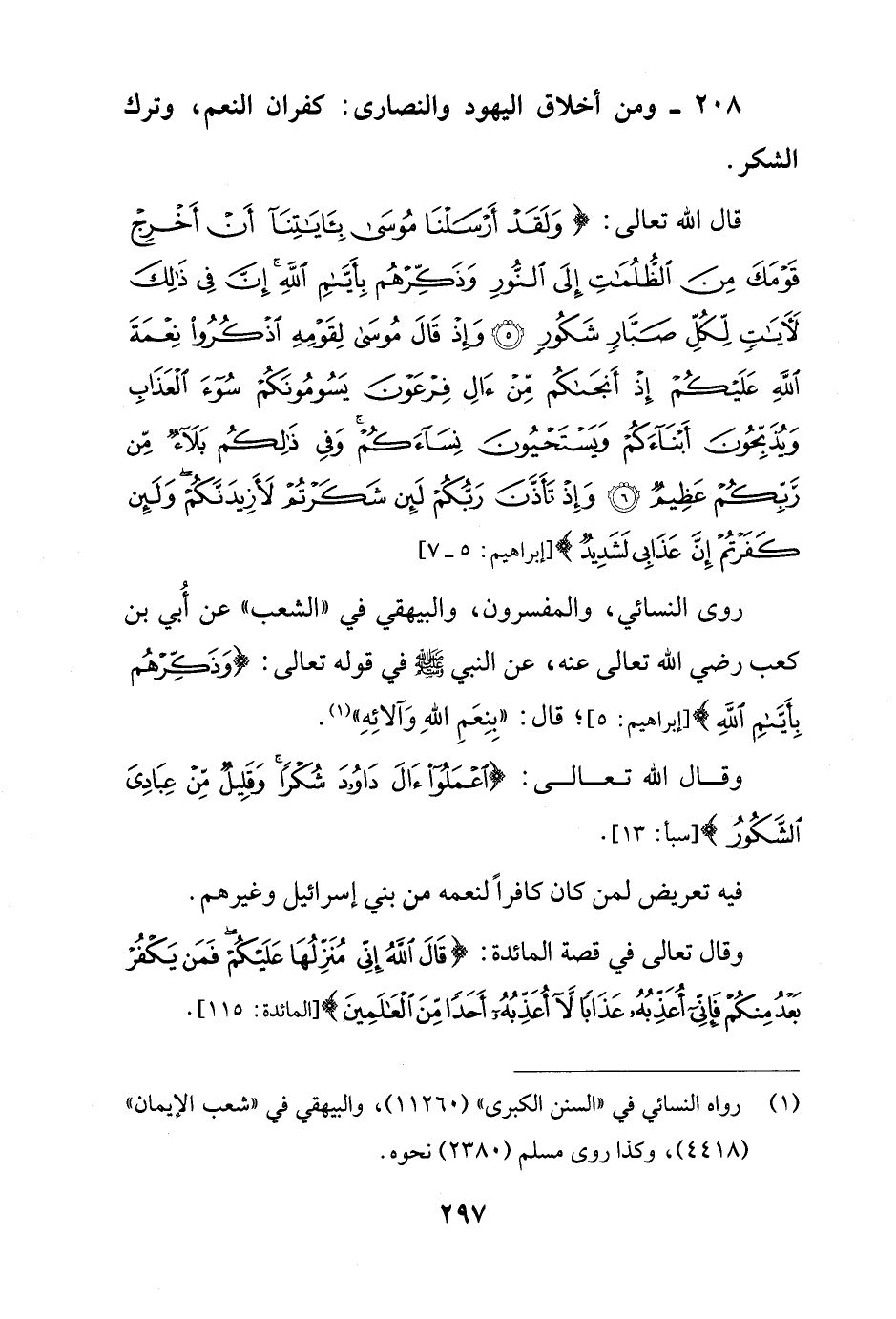 208 - ومن أخلاق اليهود والنصارى: كفران النعم، وترك الشكر.