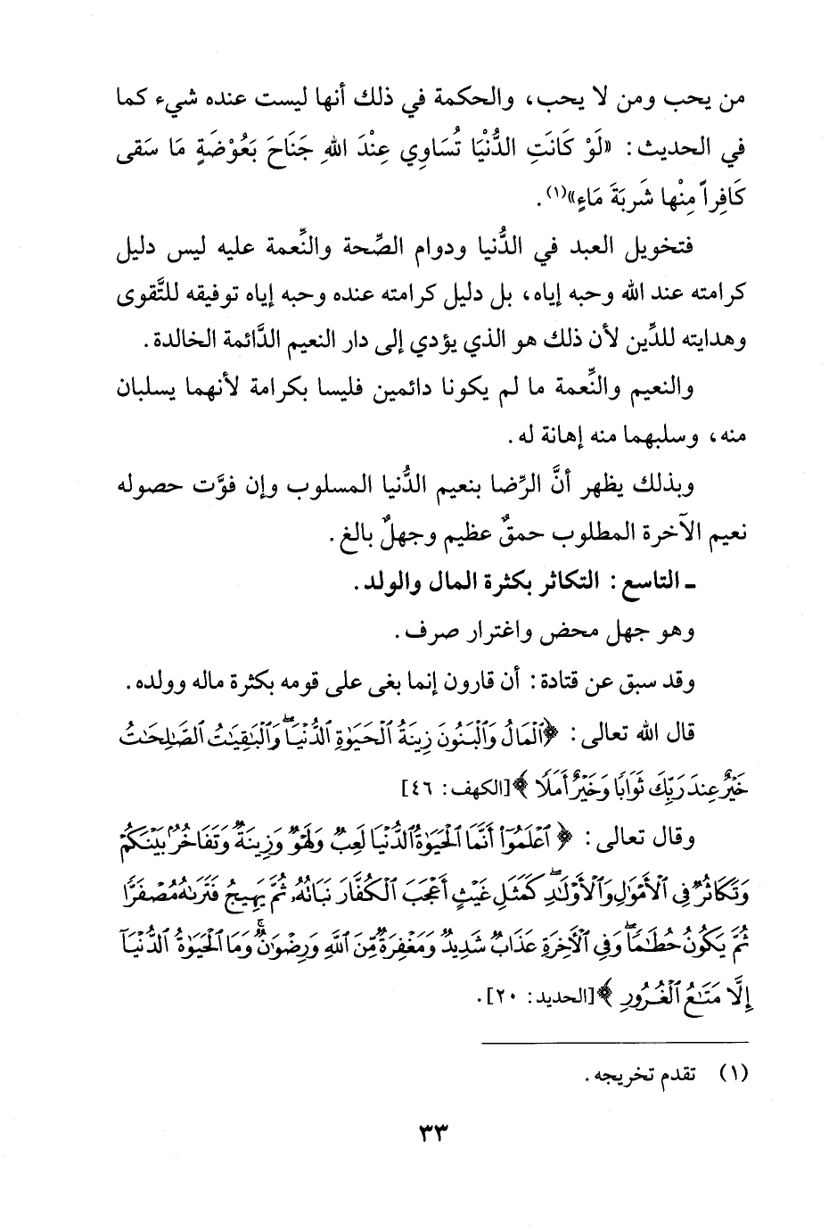 وبذلك يظهر أنَّ الرِّضا بنعيم الدُّنيا المسلوب وإن فوَّت حصوله نعيم الآخرة المطلوب حمقٌ عظيم وجهلٌ بالغ.