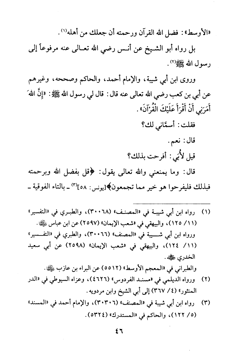"الأوسط": فضل الله القرآن ورحمته أن جعلك من أهله (¬1).