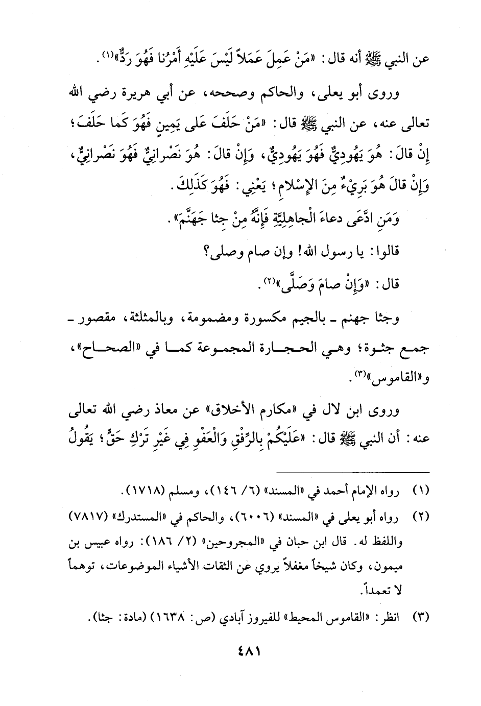 وجثا جهنم - بالجيم مكسورة ومضمومة، وبالمثلثة، مقصور - جمع جثوة؛ وهي الحجارة المجموعة كما في "الصحاح"، و"القاموس" (¬3).