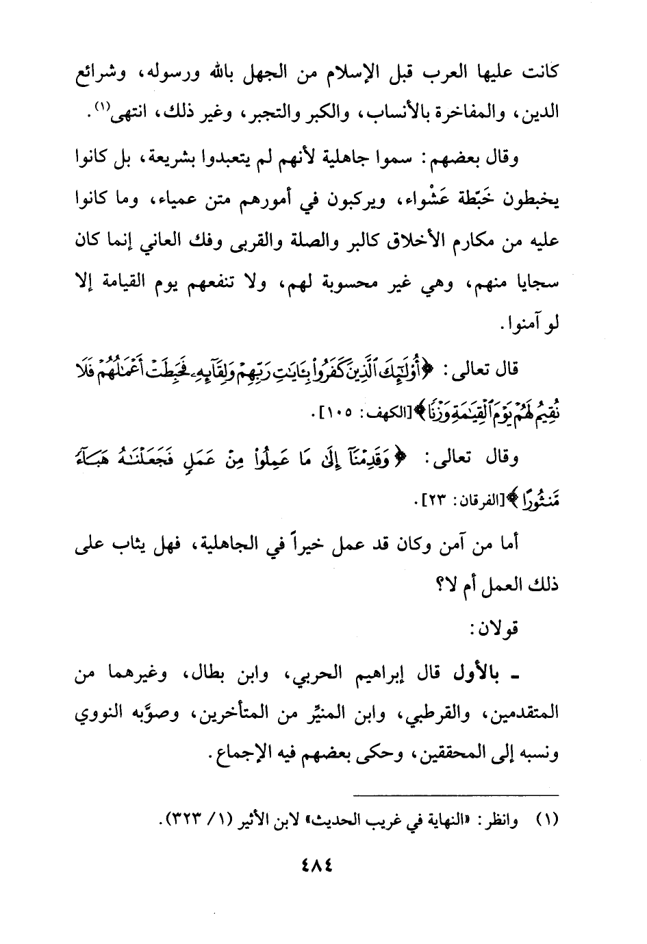 وقال بعضهم: سموا جاهلية لأنهم لم يتعبدوا بشريعة، بل كانوا يخبطون خَبّطة عَشْواء، ويركبون في أمورهم متن عمياء، وما كانوا عليه من مكارم الأخلاق كالبر والصلة والقربى وفك العاني إنما كان سجايا منهم، وهي غير محسوبة لهم، ولا تنفعهم يوم القيامة إلا لو آمنوا.