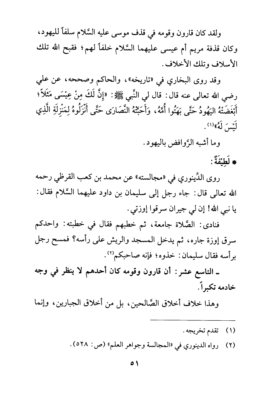 - التاسع عشر: أن قارون وقومه كان أحدهم لا ينظر في وجه خادمه تكبرًا.