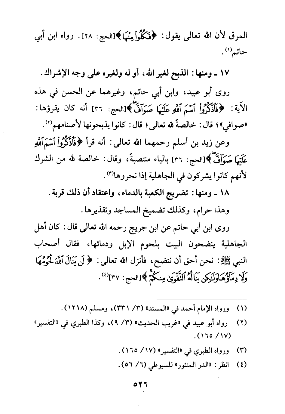 17 - ومنها: الذبح لغير الله، أو له ولغيره على وجه الإشراك.