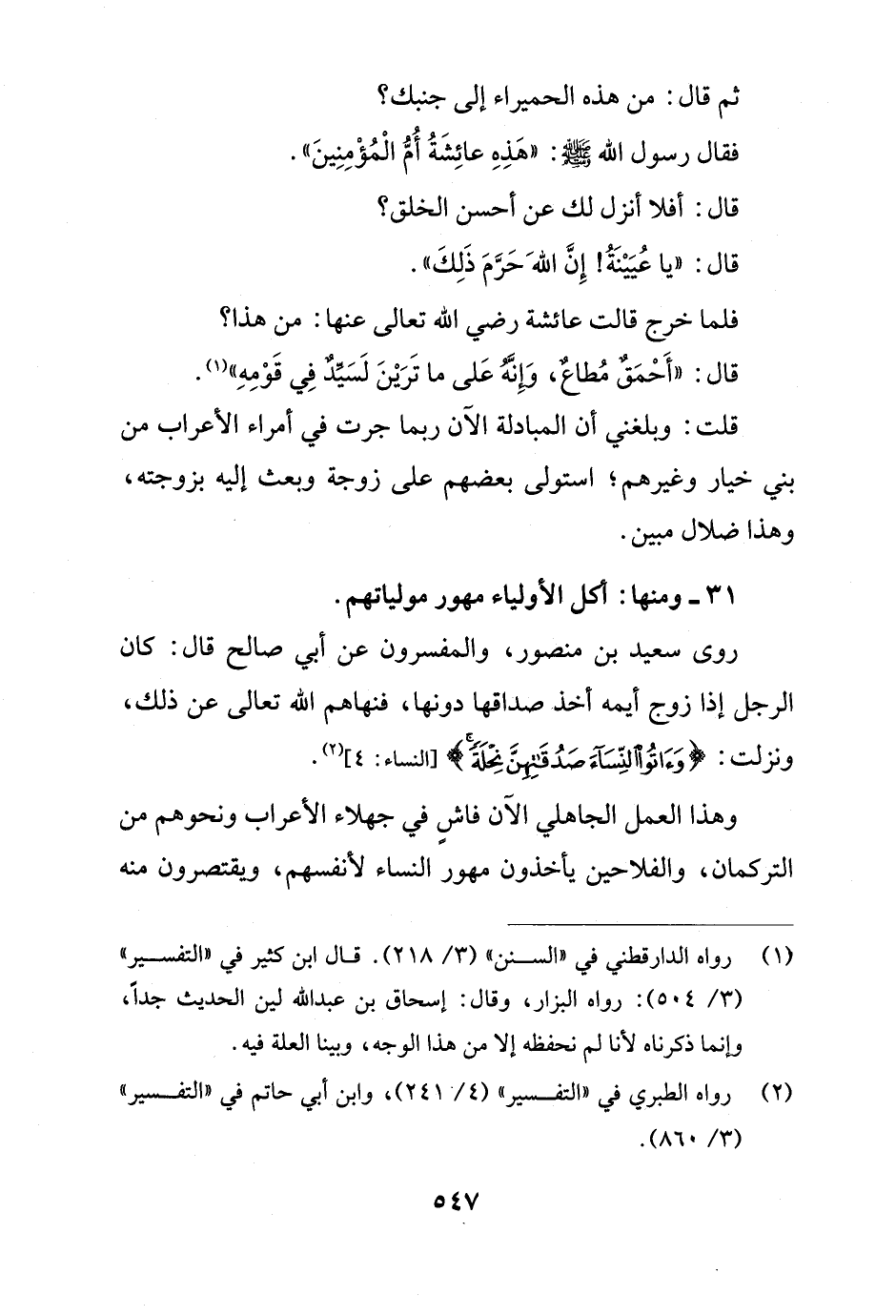 وهذا العمل الجاهلي الآن فاشٍ في جهلاء الأعراب ونحوهم من التركمان، والفلاحين يأخذون مهور النساء لأنفسهم، ويقتصرون منه