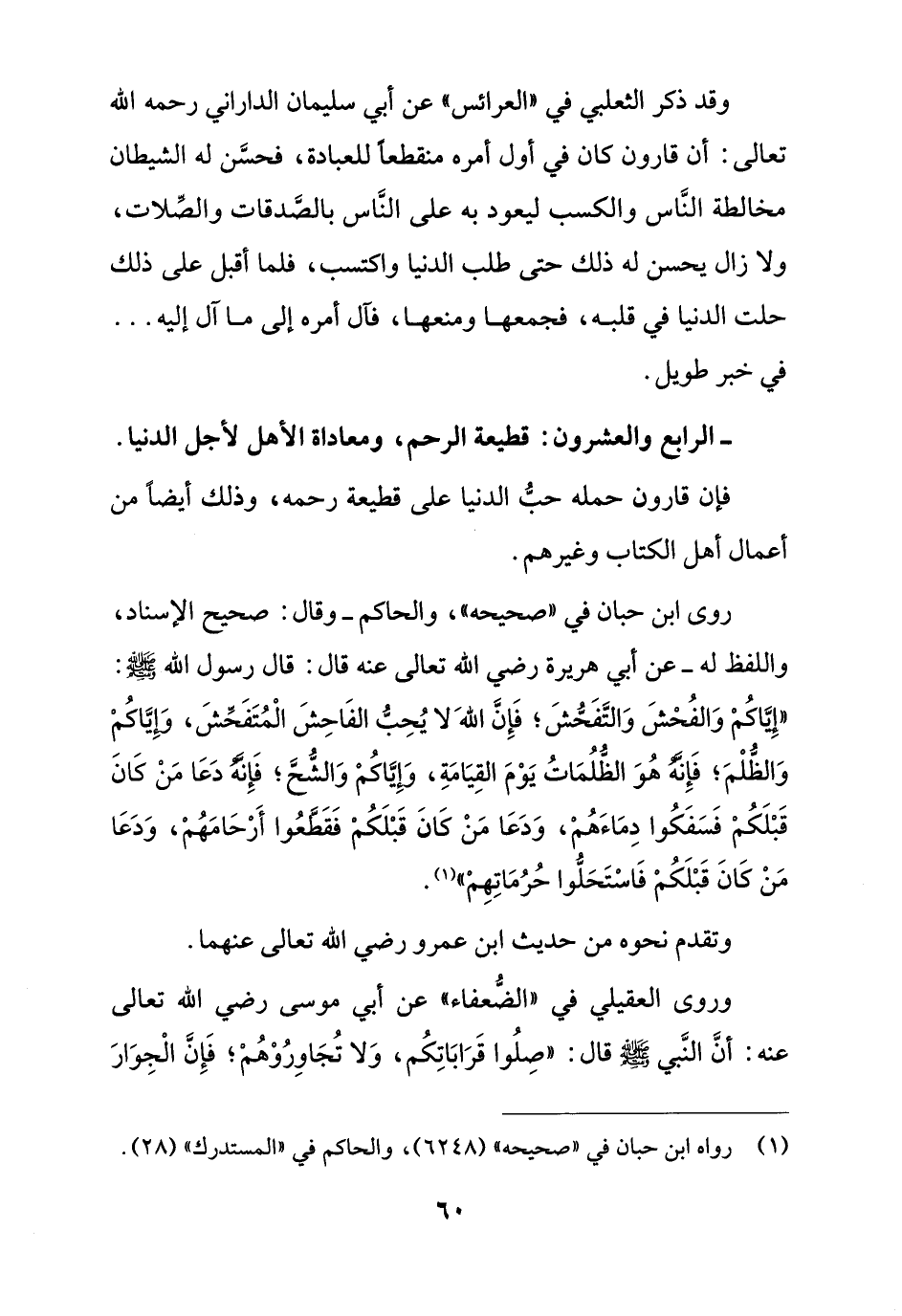 - الرابع والعشرون: قطيعة الرحم، ومعاداة الأهل لأجل الدنيا.