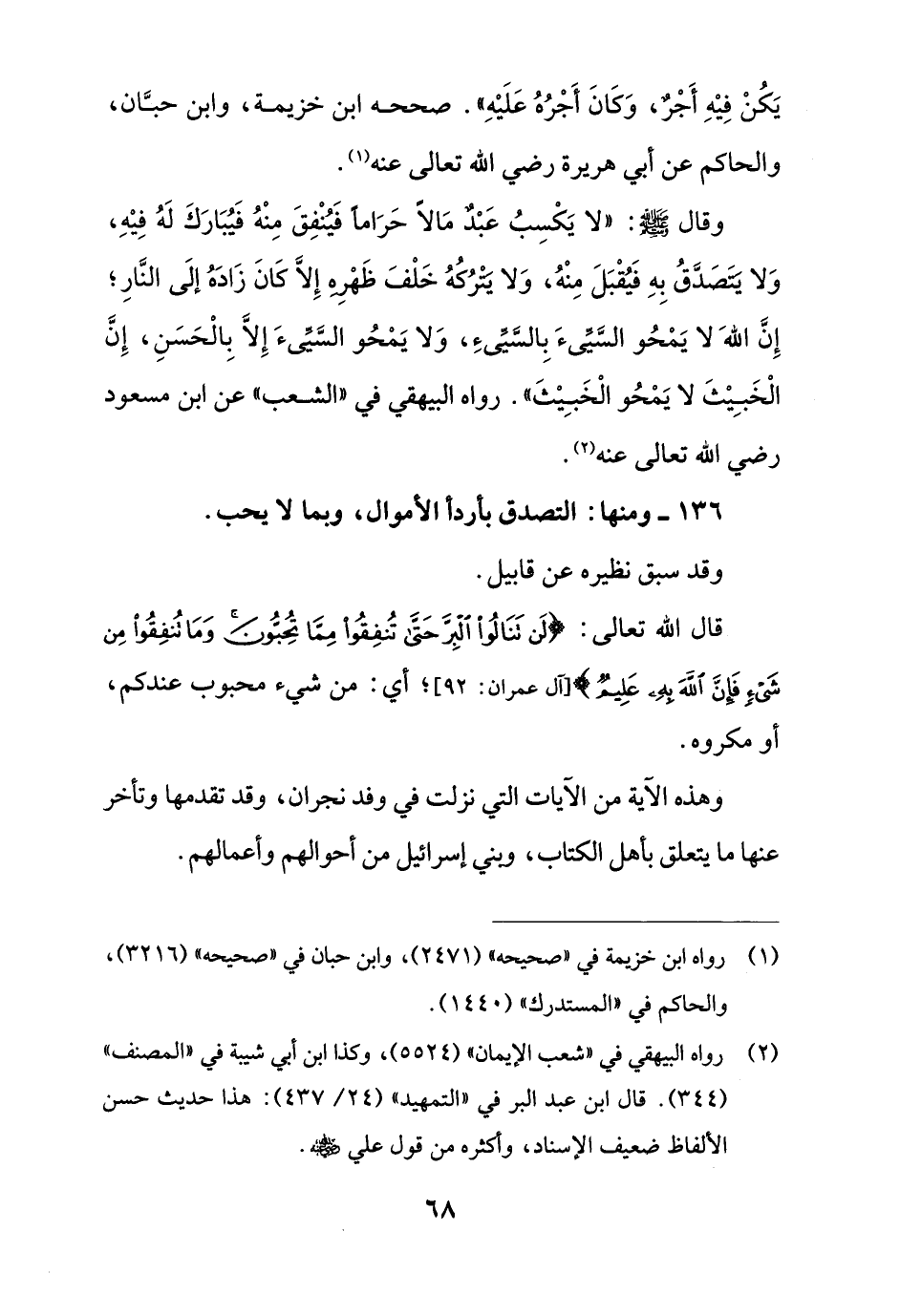 136 - ومنها: التصدق بأردأ الأموال، وبما لا يحب.