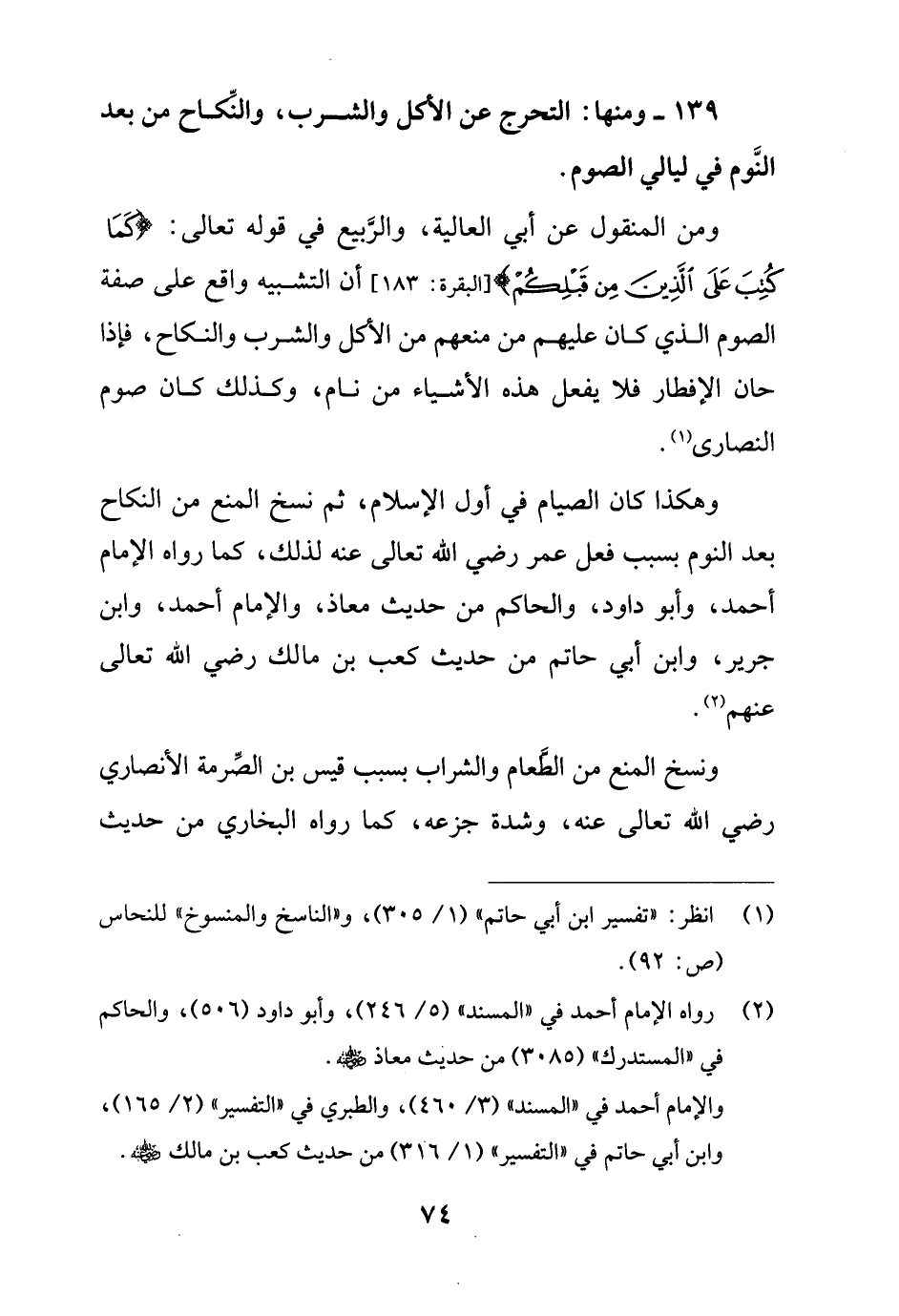 139 - ومنها: التحرج عن الأكل والشرب، والنِّكاح من بعد النَّوم في ليالي الصوم.