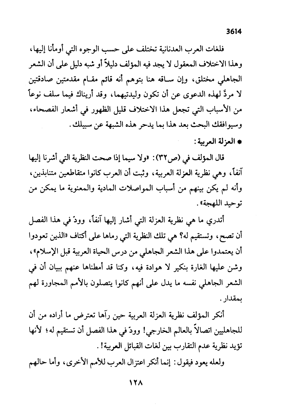 ولعله يعود فيقول: إنما أنكر اعتزال العرب للأمم الأخرى، وأما حالهم